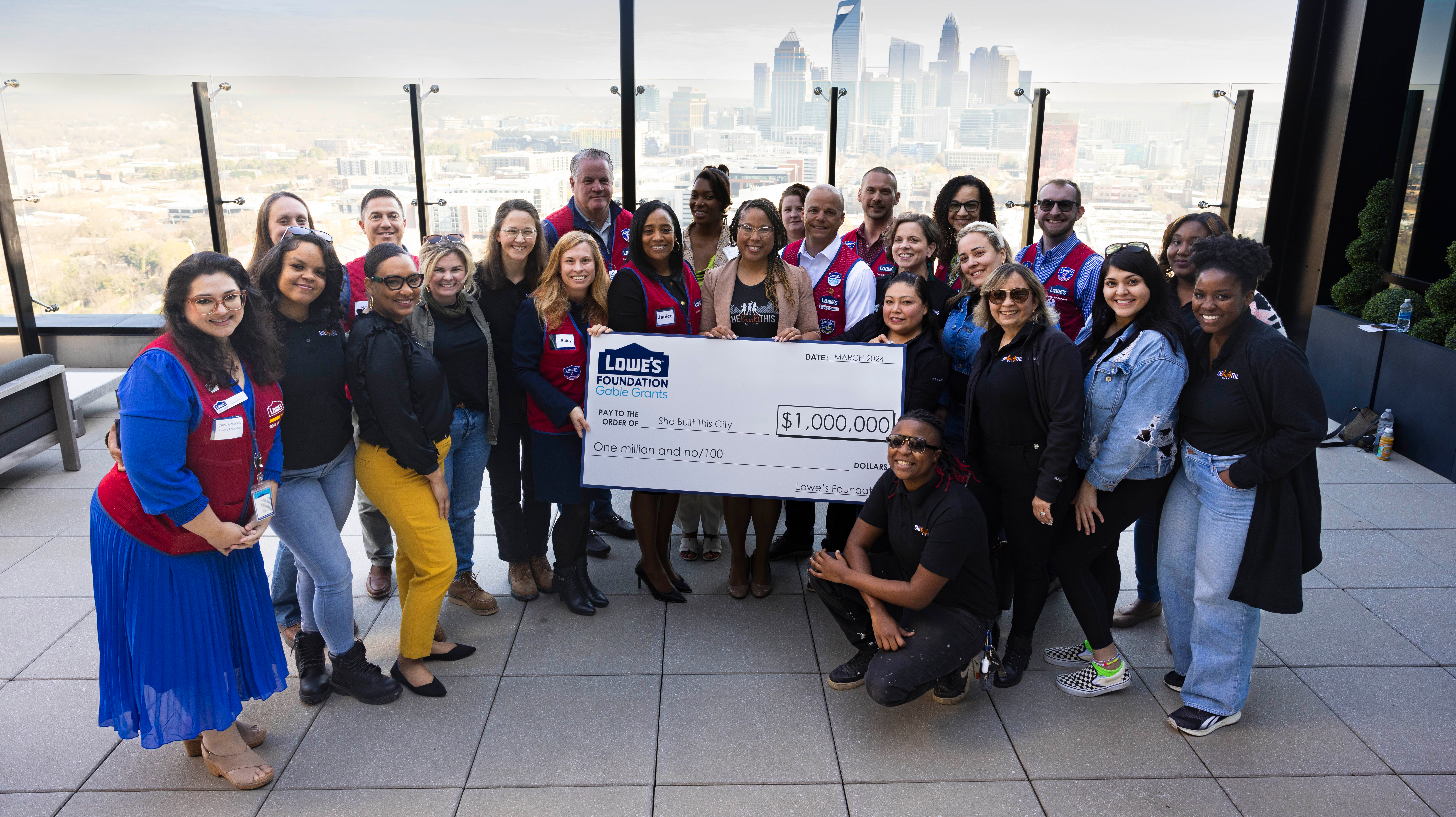 Two of the ten programs that will receive Gable Grant funding are in Charlotte and were on site for the exciting check presentations. She Built This City, a non-profit focused on bringing women into the trades, received a $1 million grant, and the Goodwill Industries of the Southern Piedmont collected an $800,000 grant.