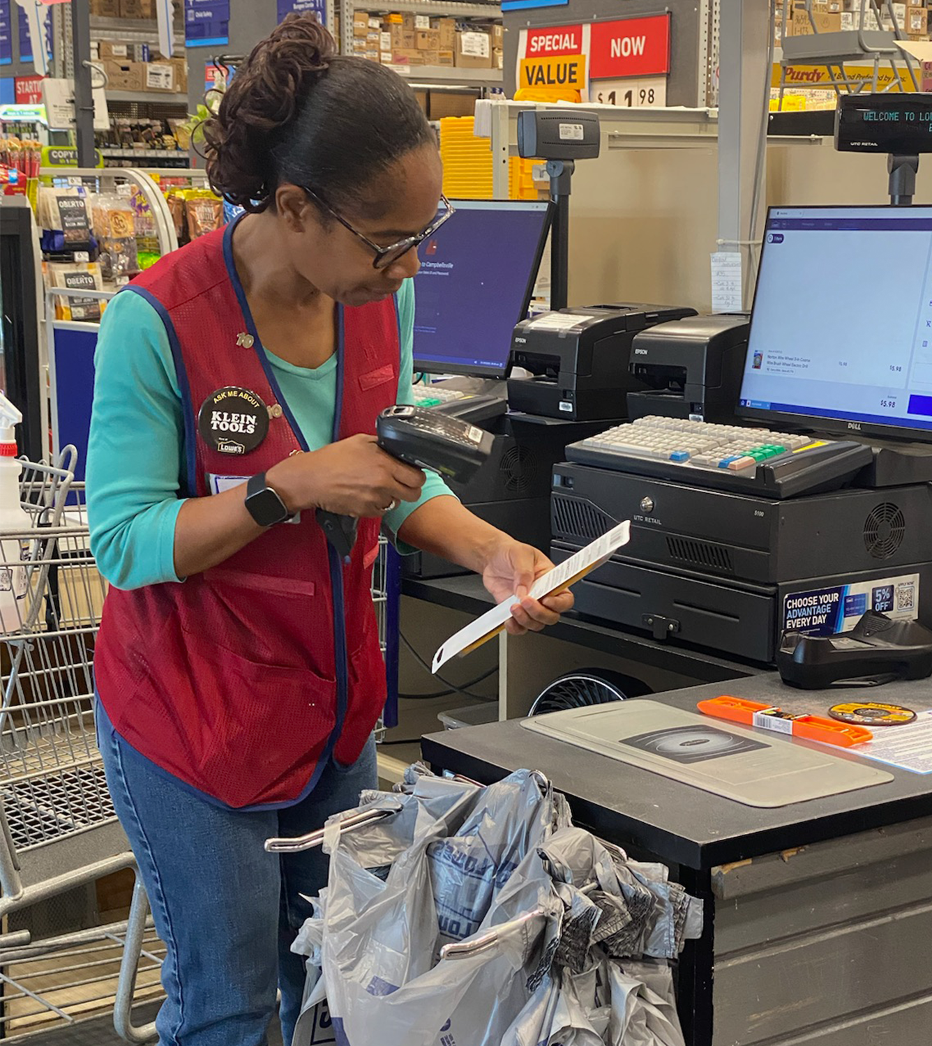 Veronica Hazard has also spent 20 years at Lowe’s and now works as a Customer Service Associate in Campbellsville, KY. She was born with a condition that impairs her vision. Congenital Nystagmus causes the eyes to make rapid uncontrollable movements, leading to impaired acuity and depth perception. It means she can’t drive.