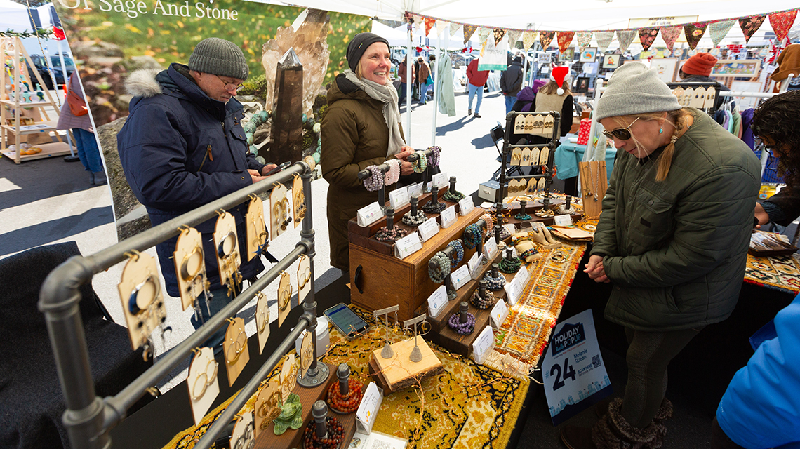 Hundreds of shoppers browsed the market as festive Christmas music played, looking at everything from hand-blown glass vases and ceramic balloons to wooden cutting boards and energy-infused gemstone bracelets. Event attendees also enjoyed food from The Smokin’ Onion, a local restaurant that closed its storefront to send its food truck out to support the event.
