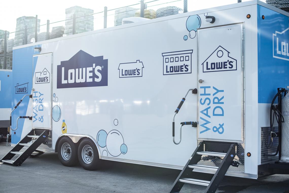 That’s why Lowe’s purchased disaster relief mobile convoys -- to provide that service for associates, and in time, the broader community. The organization’s fleet consists of eight total units – four shower units and four laundry units. Whirlpool provided the washers and dryers as donations.