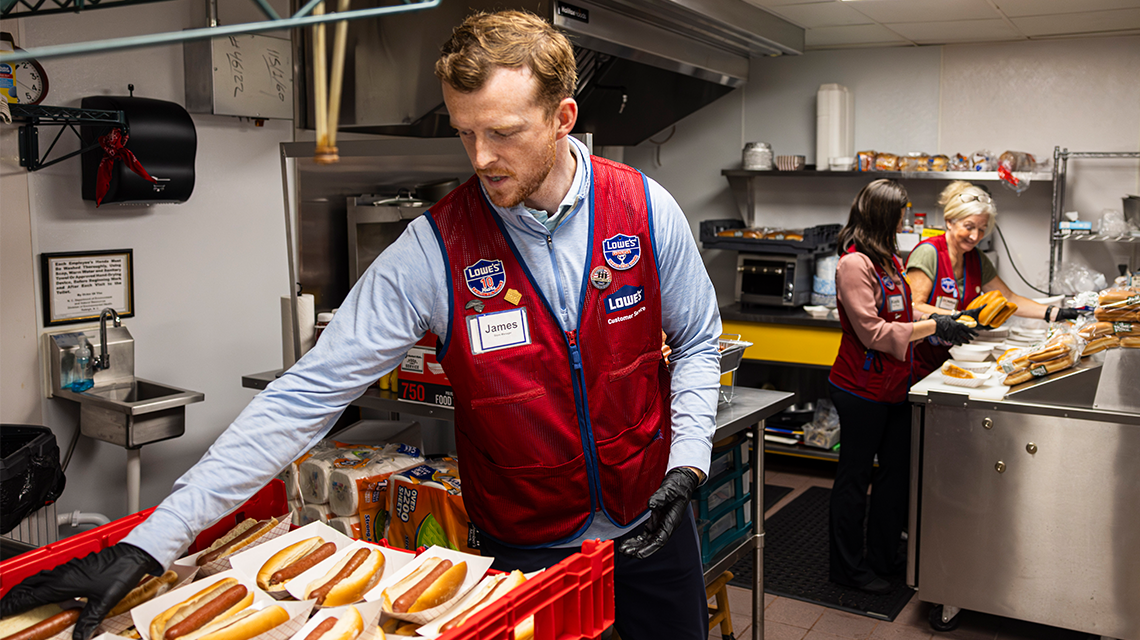Lowe’s Mooresville Store Manager Cory Callaway oversaw building the commercial kitchen and says Lowe’s vendors and associates really stepped up to get it done. Callaway brought in architects and engineers beginning in February and by August they started the remodel.