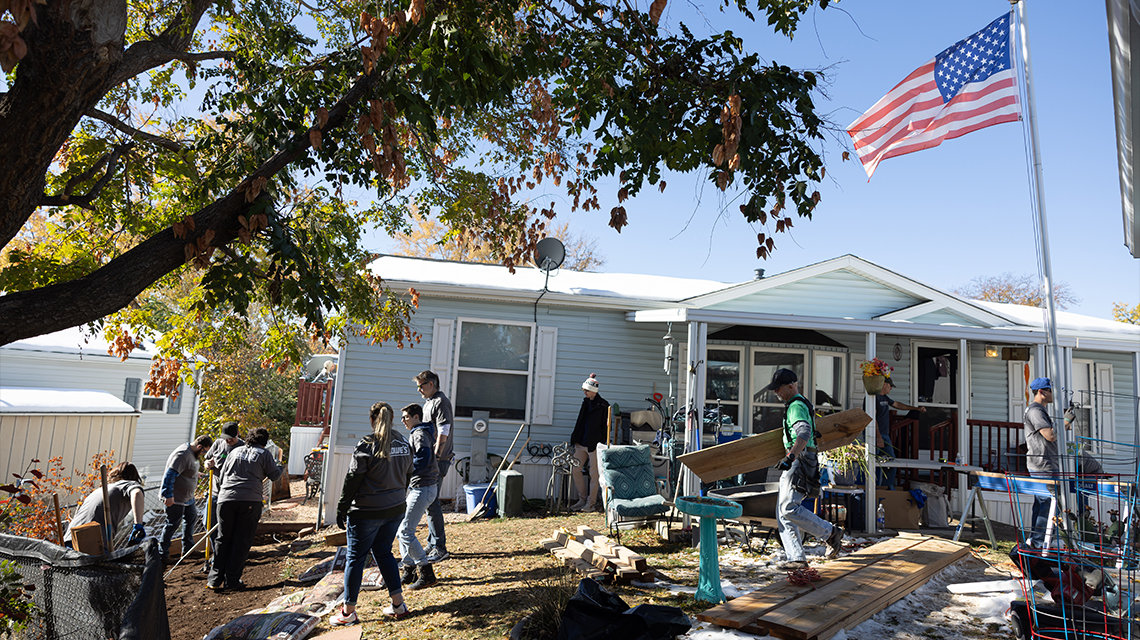 Jodie Liddy is the Executive Director of Rebuilding Together Colorado; one of more than 110 Rebuilding Together affiliates across the country. “We all share the same mission, which is to repair homes, revitalize communities, and rebuild lives,” Liddy said. “We're working on the home of Mr. Merle and Ms. Rose and doing some accessibility modifications and needed home repairs because we are all about serving those who have served. Mr. Merle gave several years of his life during Vietnam, he was a Marine. And the fact that he did that, the least we could do is serve him too. He's got a lovely home, he's worked hard to maintain it, and the fact that we can keep him safe in it and leave here with smiles on their faces, it just means the world to us.”