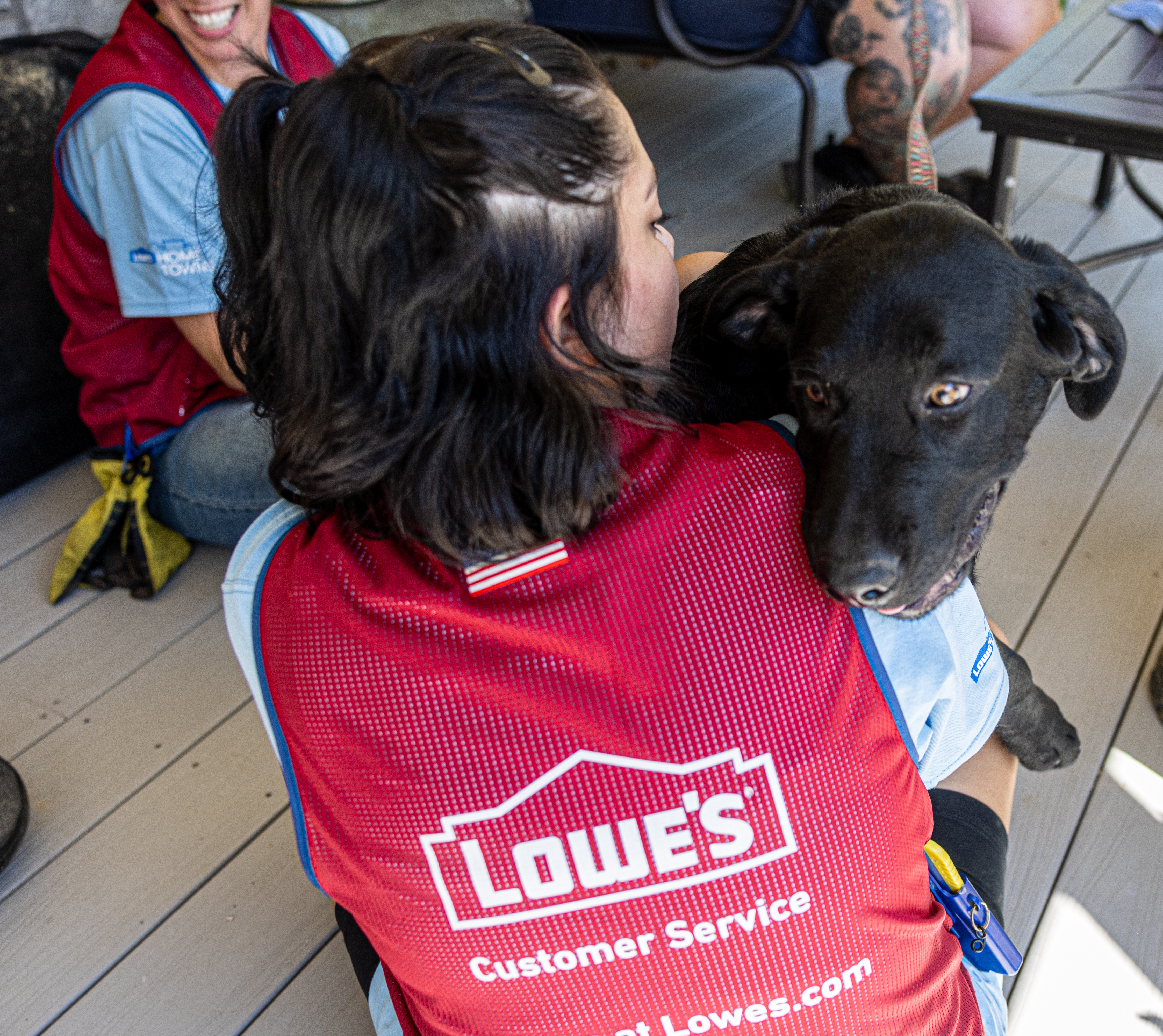 That’s when Lowe’s stepped in to help bring Hero Pups take this next step in their mission, Baker applied for and was awarded a Lowe’s Hometowns grant. When it was time to get to work, Baker was blown away as Lowe’s Associates from her local store showed up ready to make magic happen. By the end of the day the outdoor space of Hero Pups was transformed. From patio furniture, fencing, to flowers, the space was given new life and purpose.