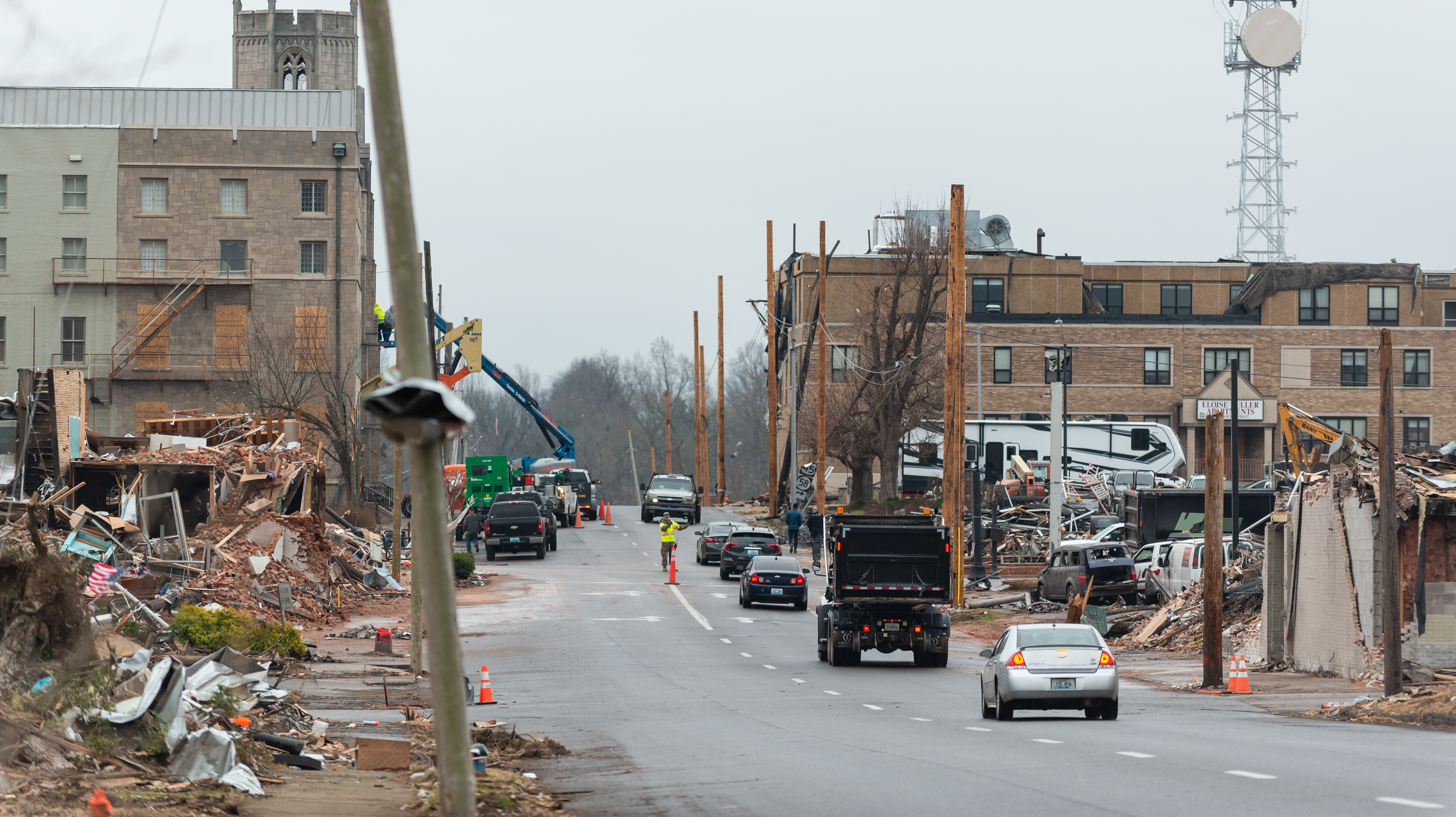 In the aftermath, the devastation was overwhelming. Entire structures, including schools and cherished community buildings, were reduced to rubble. Derek Vallandingham, store manager, described a heart-wrenching scene.