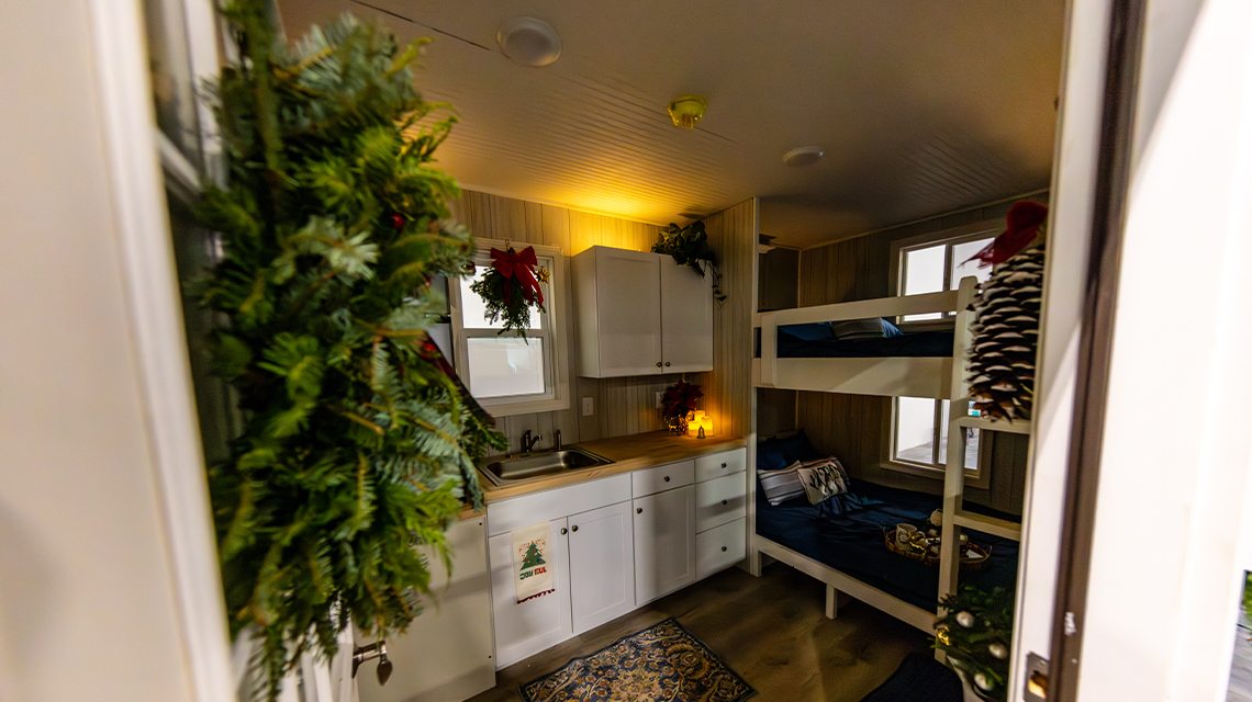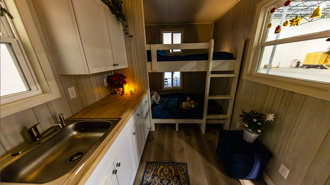 Each tiny home is eight feet by 16 feet, permanently fixed on wheels and can sleep three to four individuals. The homes will connect to electricity, are heated and come equipped with a kitchen, bathroom, two full-size beds and a selection of furnishings and décor curated by Lowe’s design team.